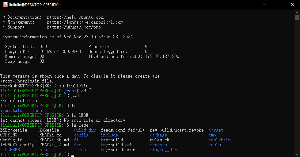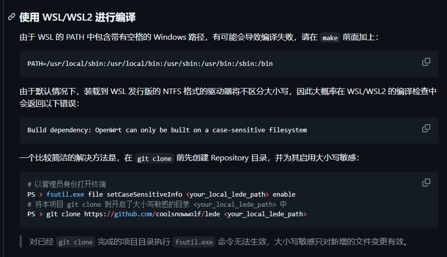 根据LEDE的编译说明,用WSL编译可能会出现这2个问题需要先解决一下