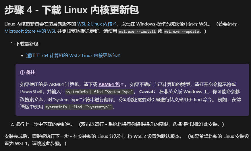 根据微软的教程旧版 WSL 的手动安装步骤 | Microsoft Learn基本都能搞定,我也简单讲一下我的流程
