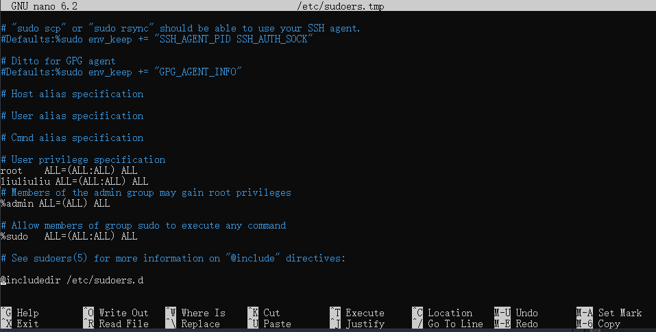 #visudo命令是整体,中间没有空格,回车后会进入编辑界面
