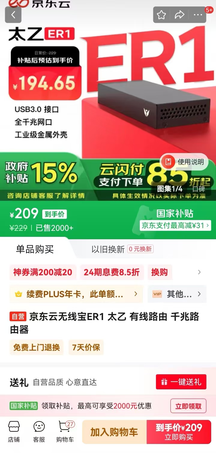 最近京东云太乙又有国补了,综合所有优惠下来最后160成交