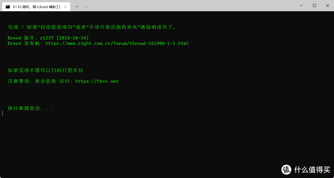 剩下的就交给程序自动完成,当出现上图中的界面,就说明breed基本上算是刷入完成了,就是这么简单!